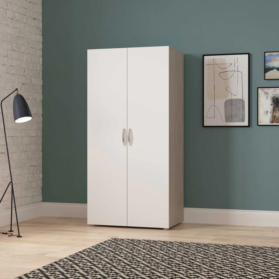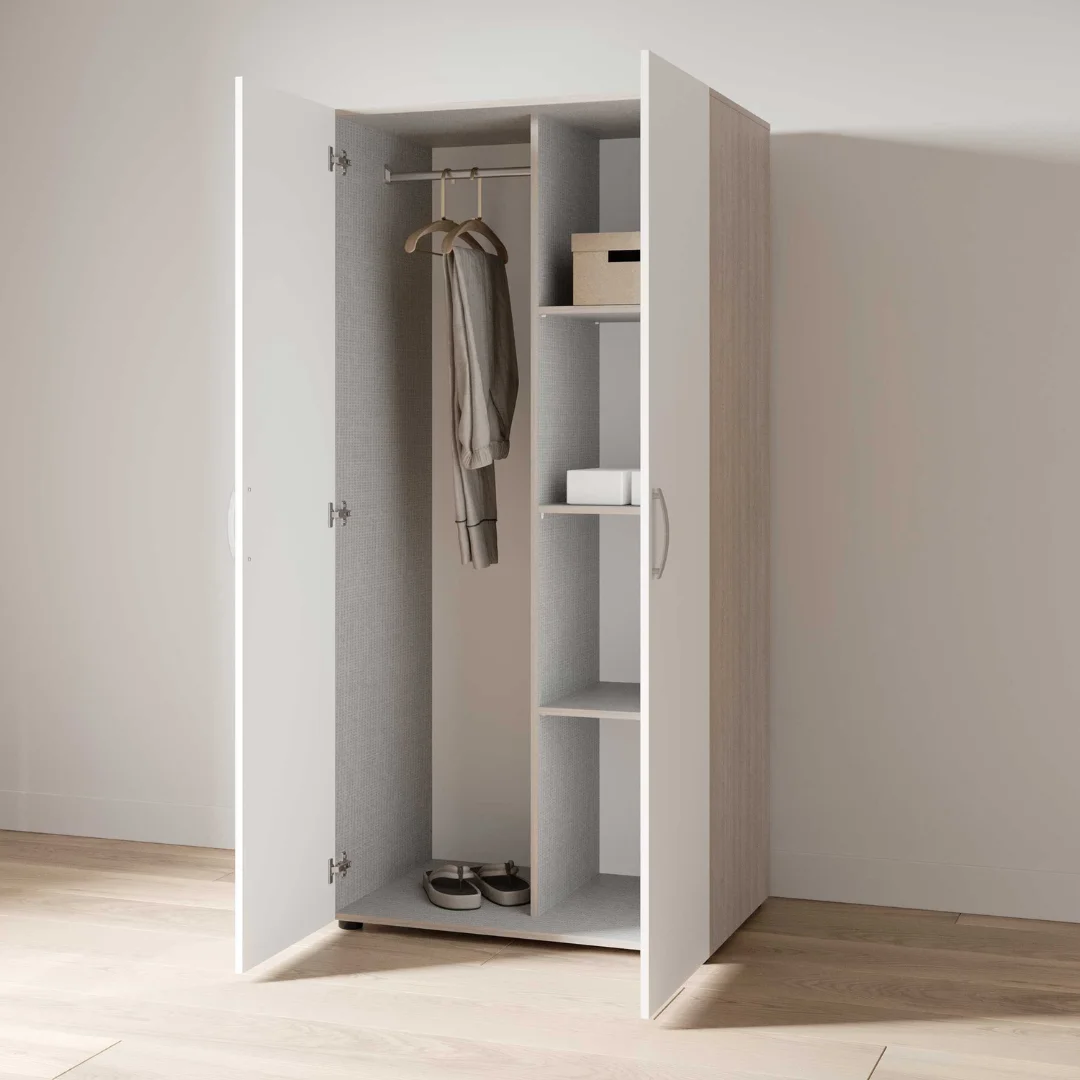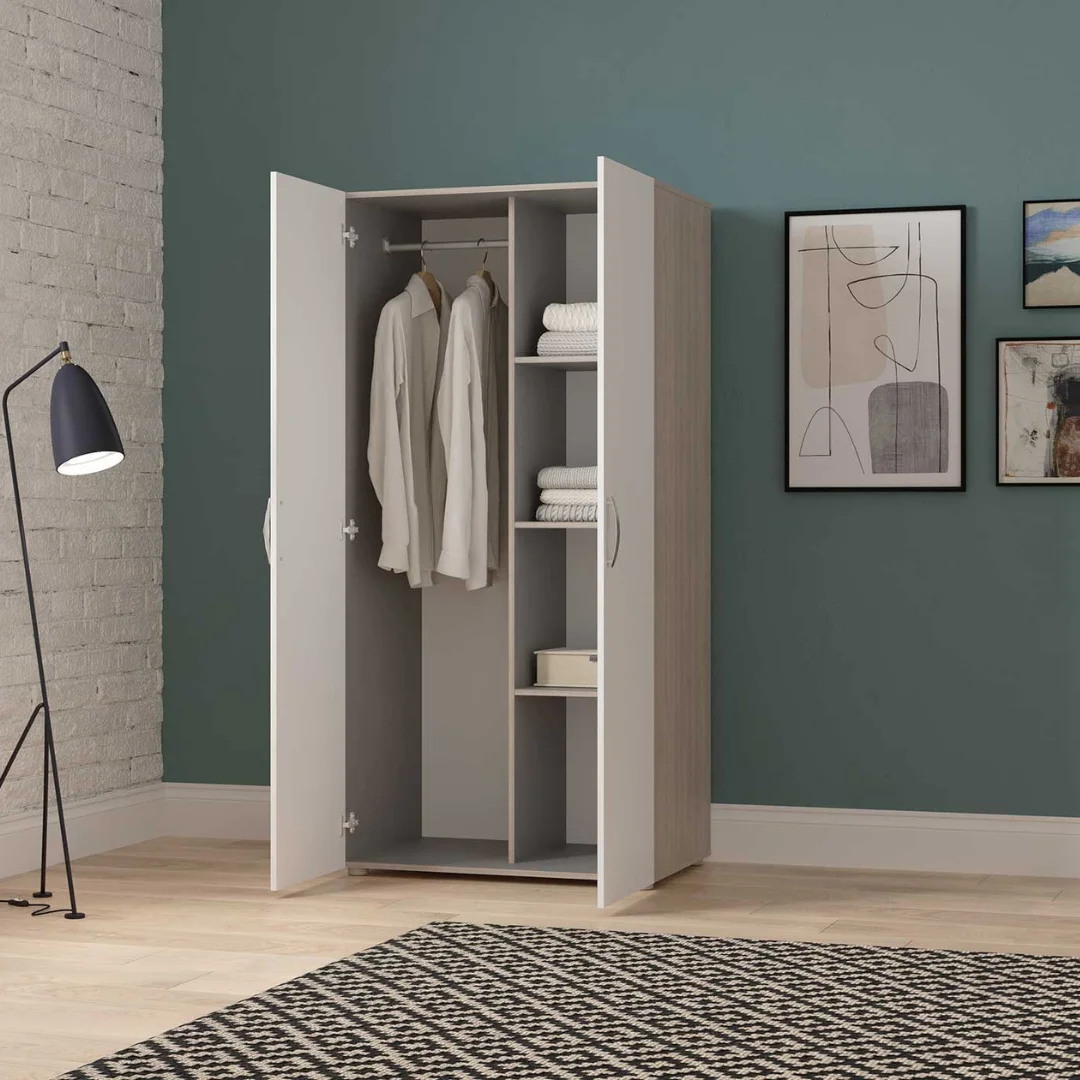 Armoire 2 portes, 1 tringle et 3 étagères – chêne/blanc